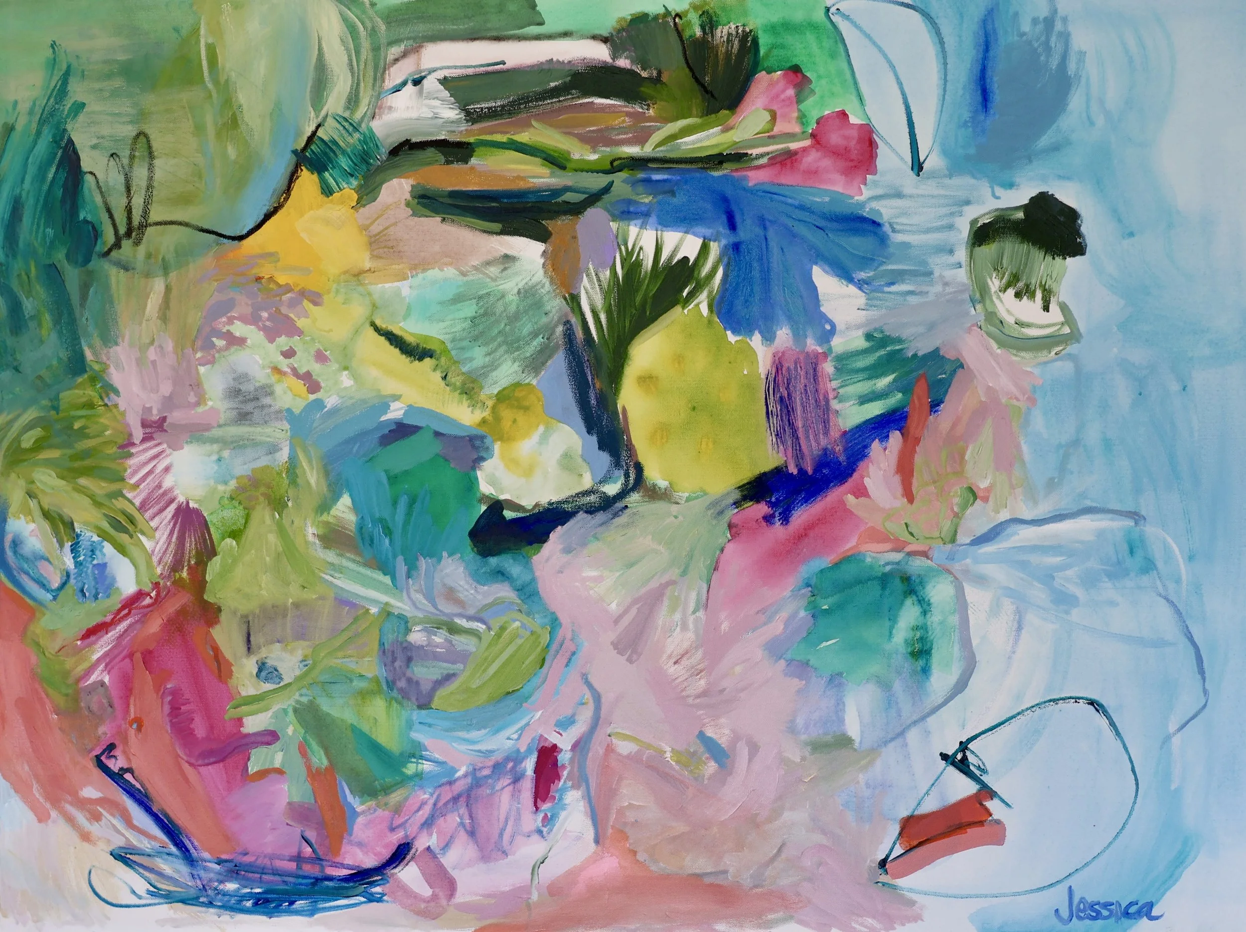 This series of abstract works takes inspiration from the lush gardens and coastal playgrounds of Sydney, Australia. In the words of the iconic Australian painter, Brett Whiteley: …'How to make images of this city that are not cliche..millions of pictures have been painted…how to find a vision is the challenge. What one is after is a high-octane visual poetic journalism, brief, essential and above all fresh.’